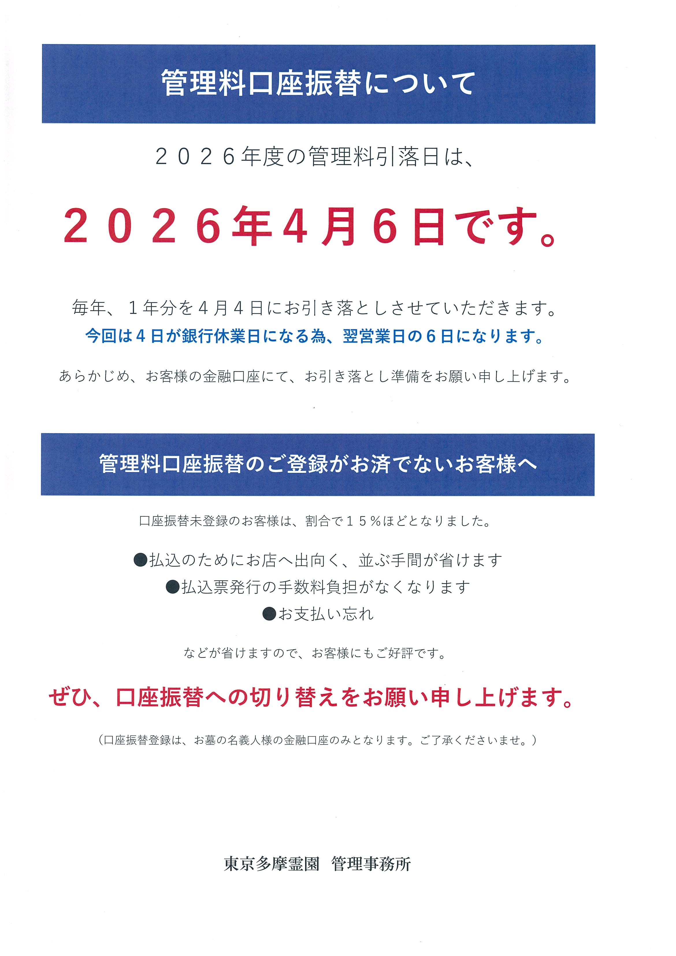 2026年度管理料 口座振替のお知らせ(口座振替登録済みの方)